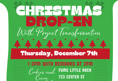 Learn MoreJoin us for our first Christmas Drop-In with Project Transformation. Stop by in Pine Bluff at St. James UMC or in Little Rock at FUMC downtown to share in cookies and cocoa while hearing some of our highlights […]